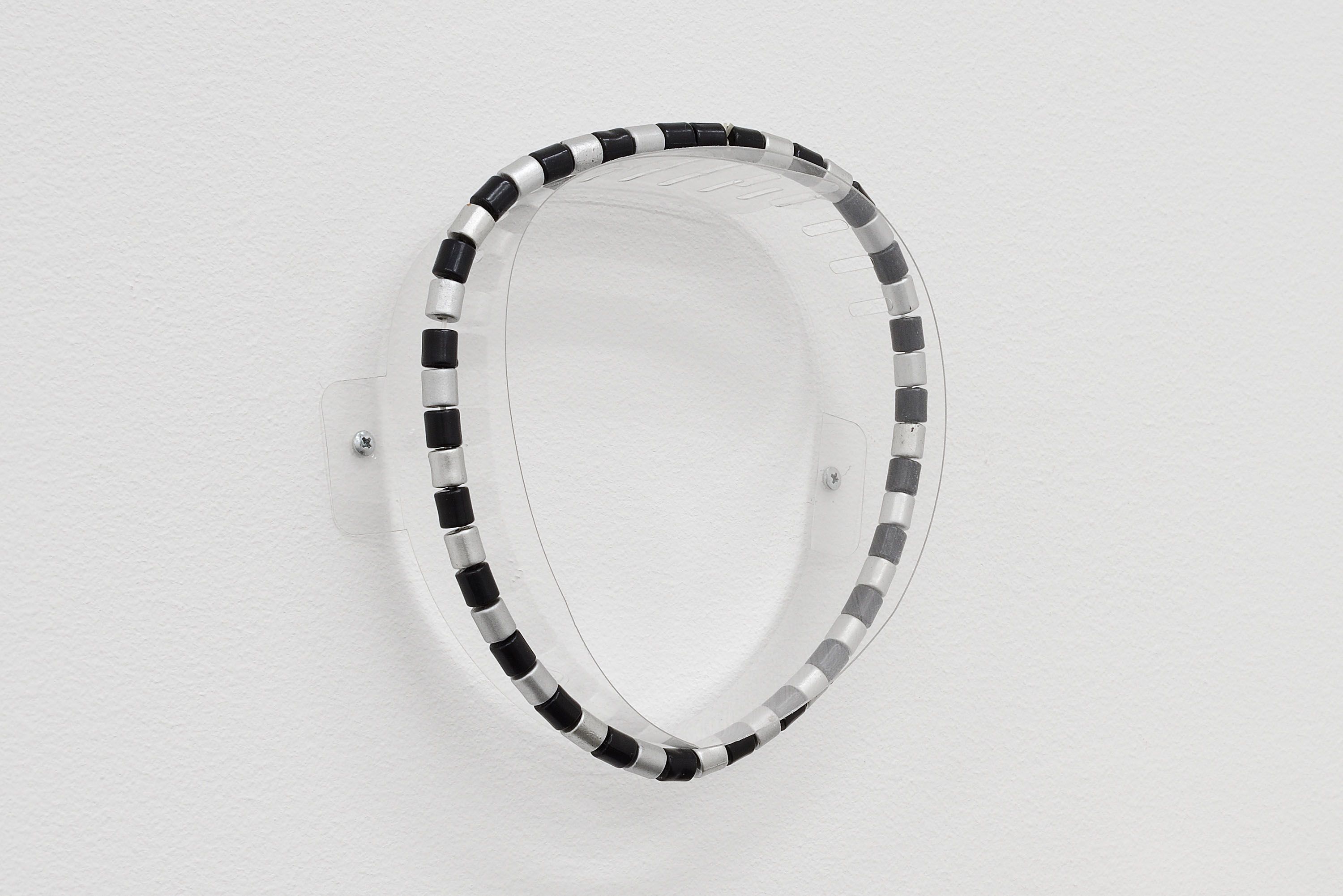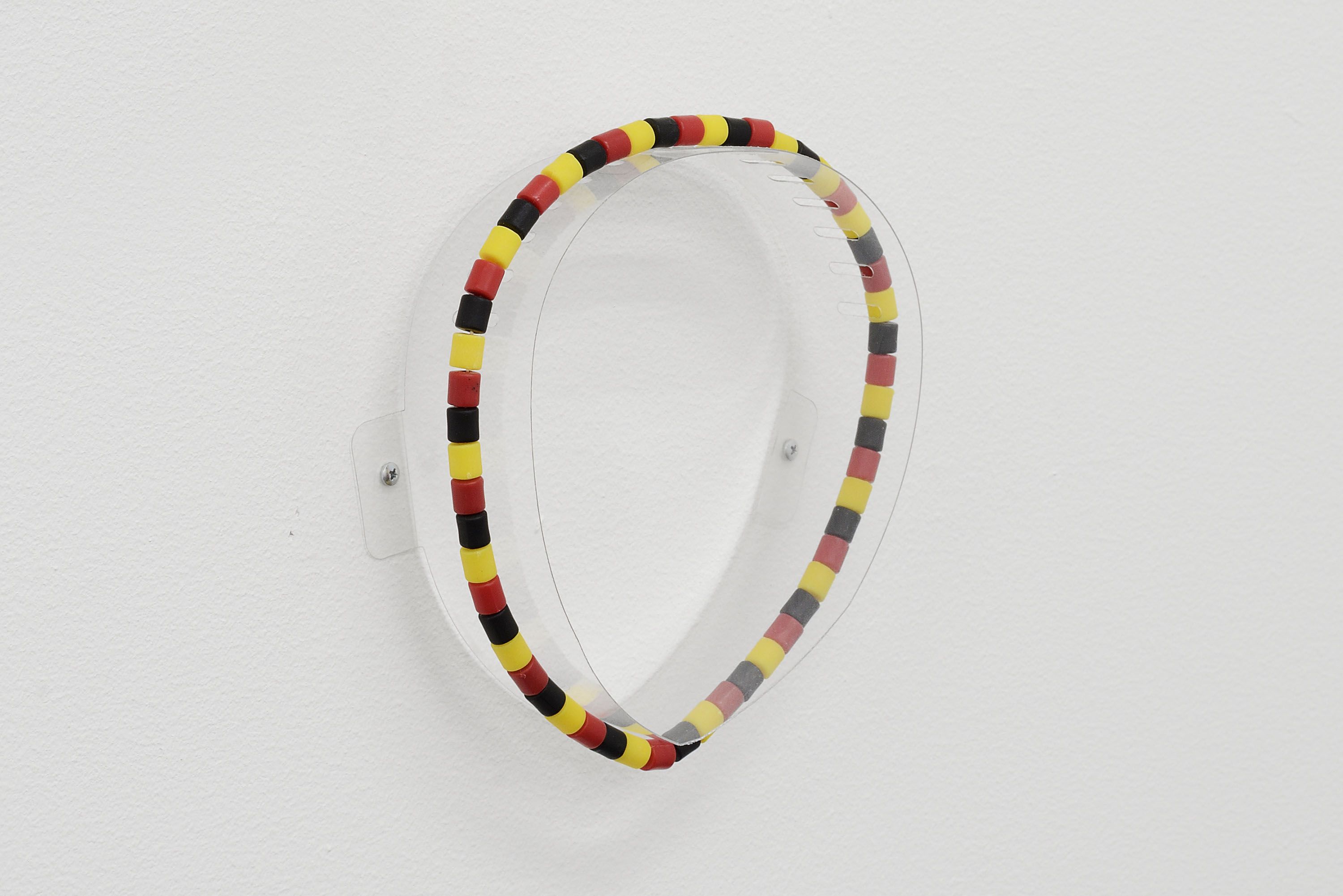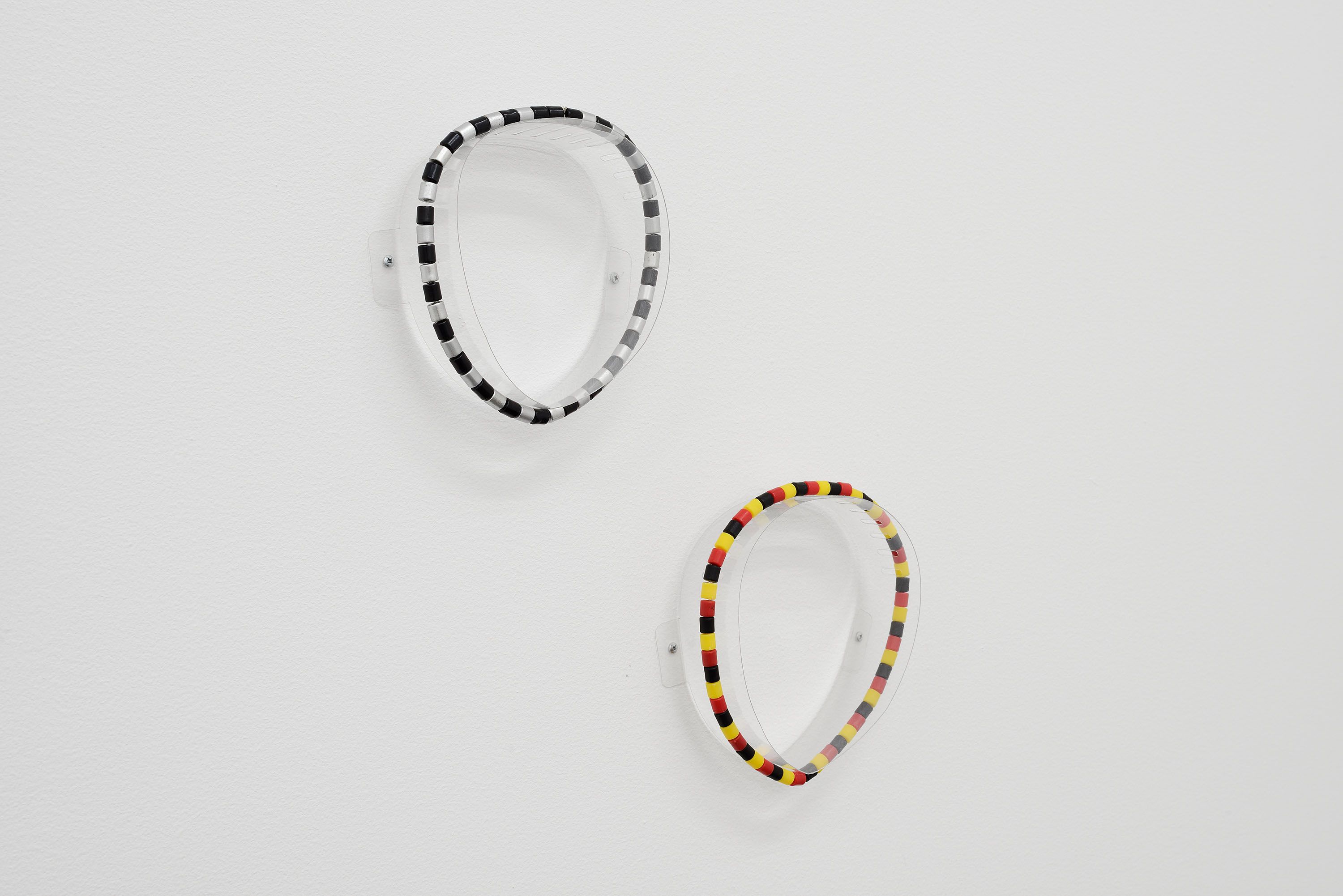 installation view, new words, Emanuel Layr, Rome things are tight, 2017 plastic, polystyrol, elastic band 6 x 6 in 15 x 15 cm things are tight, 2017 plastic, polystyrol, elastic band 6 x 6 in 15 x 15 cm