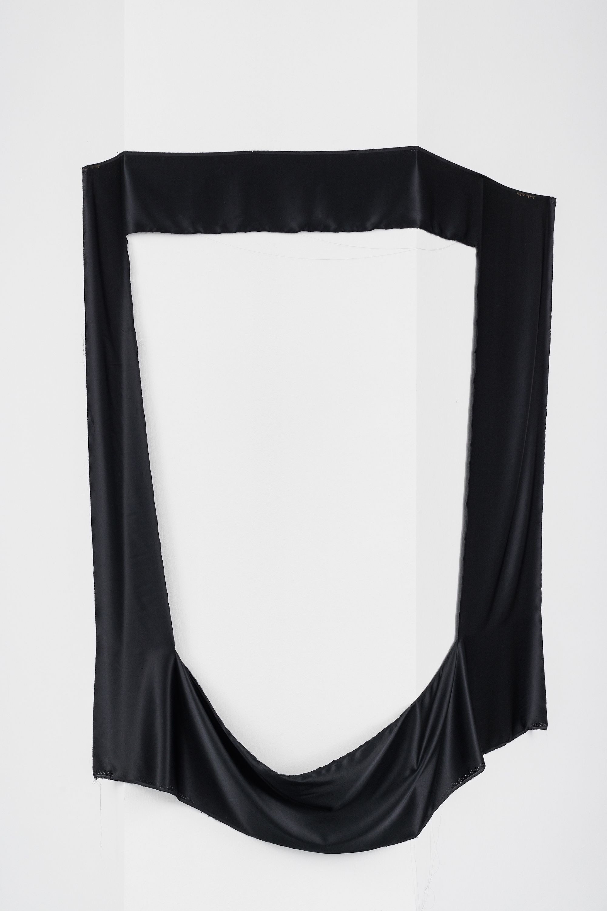 installation view, Mode und Tod, Emanuel Layr, Vienna Die Erste Zeit der Jungen Liebe, 2023 silk satin approximately 63 x 61.5 in approximately 160 x 156 cm