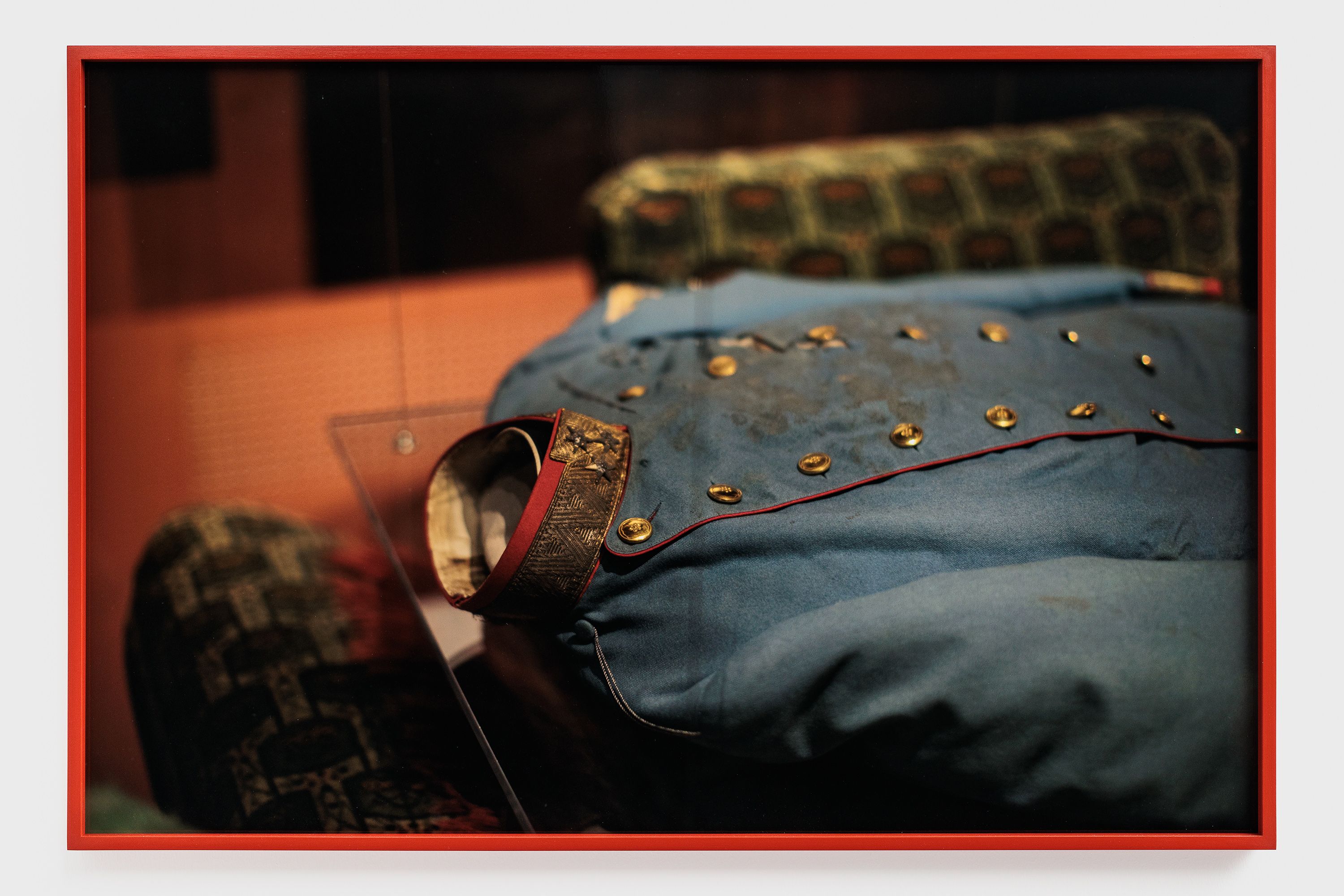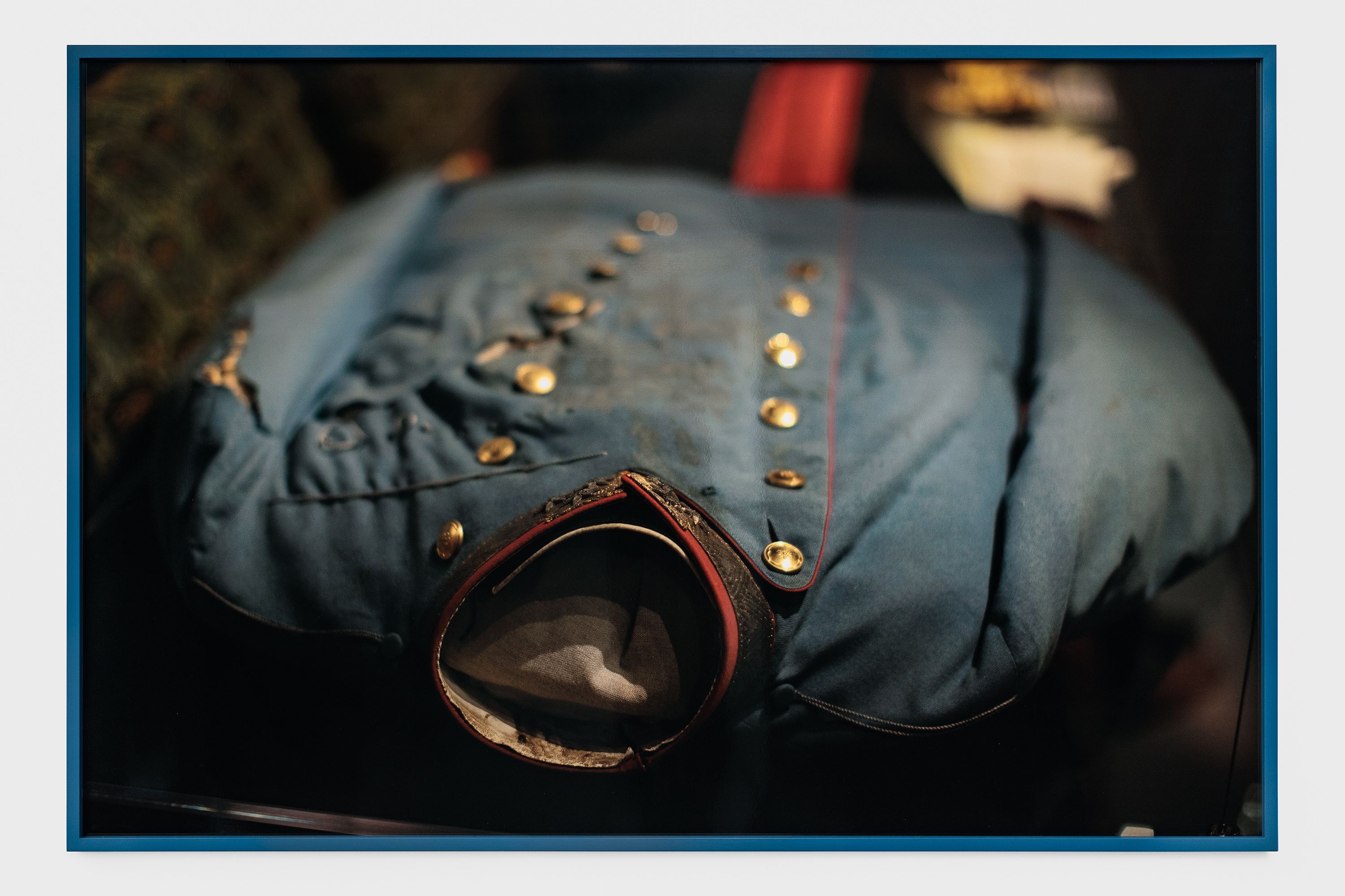 installation view, Mode und Tod, Emanuel Layr, Vienna The Most Past, 2023 c-print 42 x 64 in 106.5 x 162.5 cm Erzherzog Franz Ferdinand’s Uniform im Heeresgeschichtlichen Museum Wien / Archduke Franz Ferdinand’s Uniform at the Museum of Military History Vienna, 2023 c-print 26.5 x 40 in 67.5 x 101.5 cm